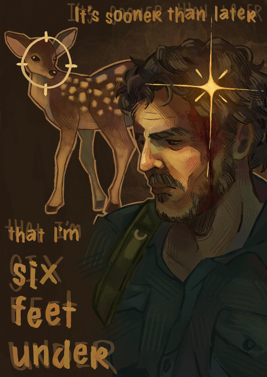 When Joel dies in The last of us II, his character is weirdly accepting of the fact that he’s going to die. He’s very aware that there is no way out so I decided to give him a sort of “deer in the headlights” type imagery in this illustration, stretching this theme further by adding the chosen text.