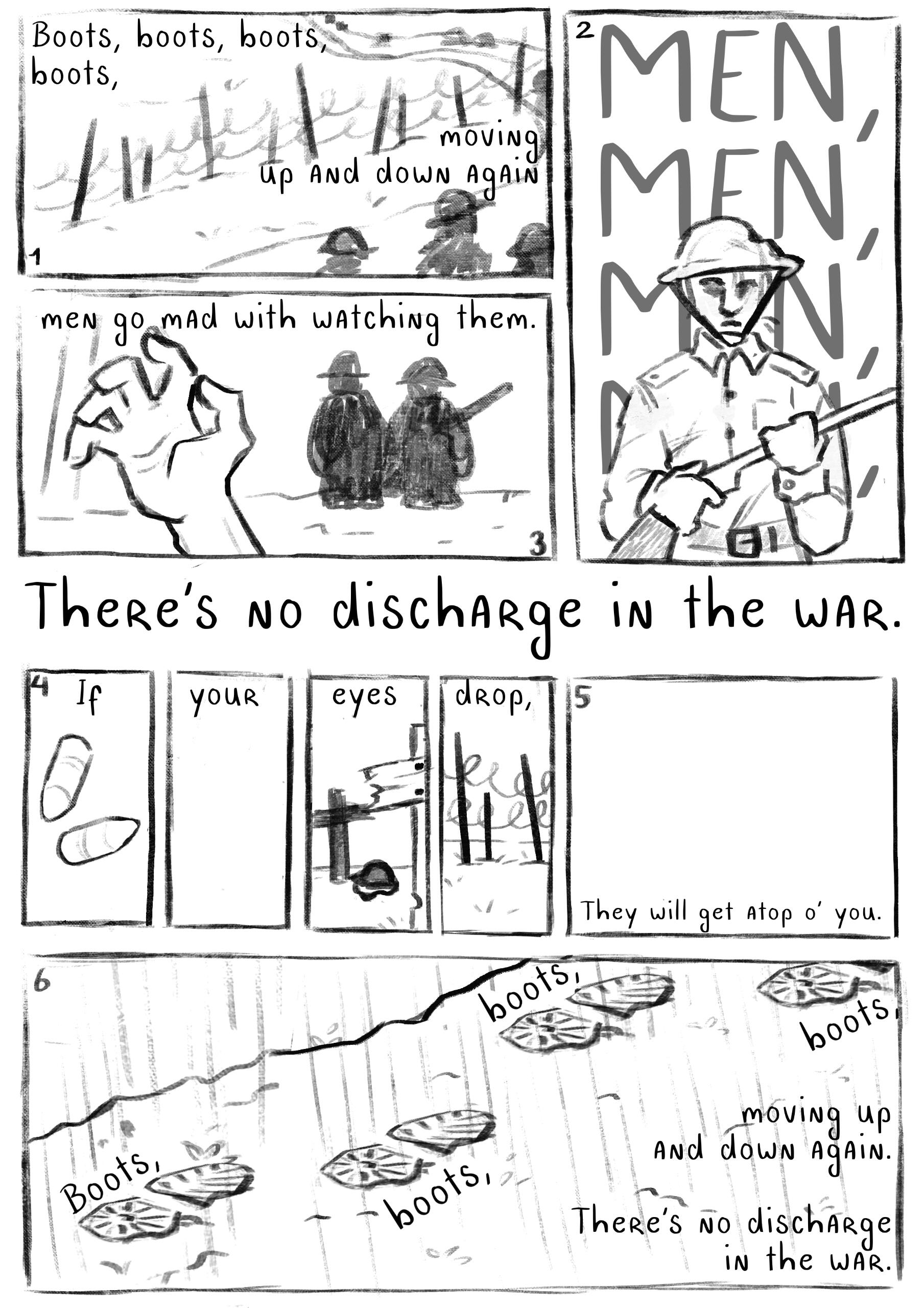 I turned the attention away from the war and actions of the characters, and shifted my focus to the “why?” and used both imagery and dialogue to answer that question.